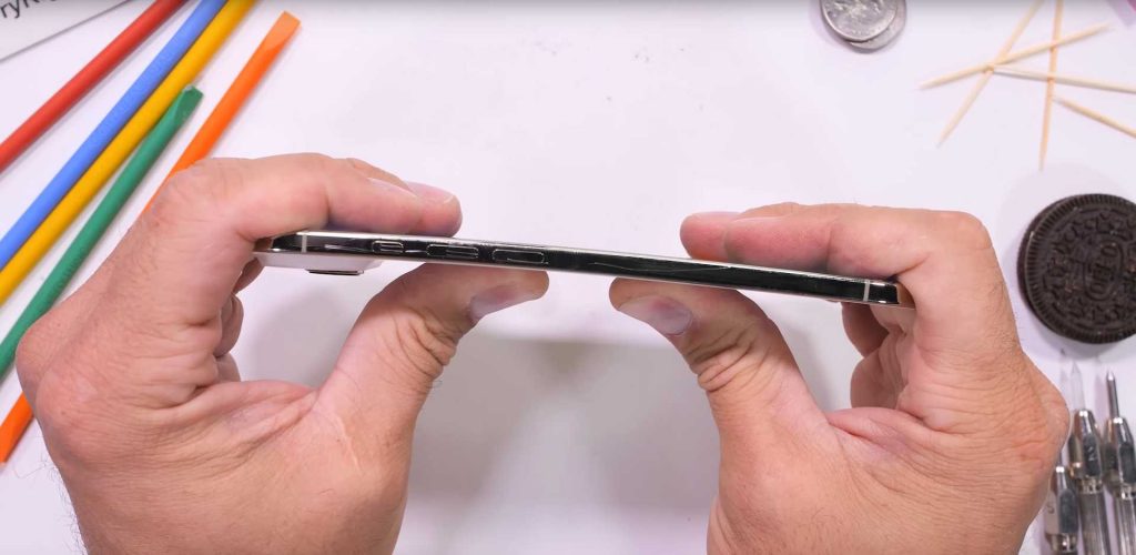 Un célèbre testeur, du nom de JerryRigEverything sur YouTube, a voulu voir ce que l’appareil pouvait supporter. Et il n’a pas réussi à le déformer à la main. Pour le pousser à l’extrême, il a fait appel à une machine. Et le smartphone est particulièrement résistant. Il aura fallu l’équivalent d’un poids de 97 kg pour le tordre au point de casser l’écran. Il note aussi que l’écran est particulièrement résistant aux rayures.